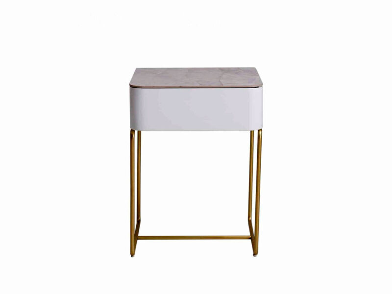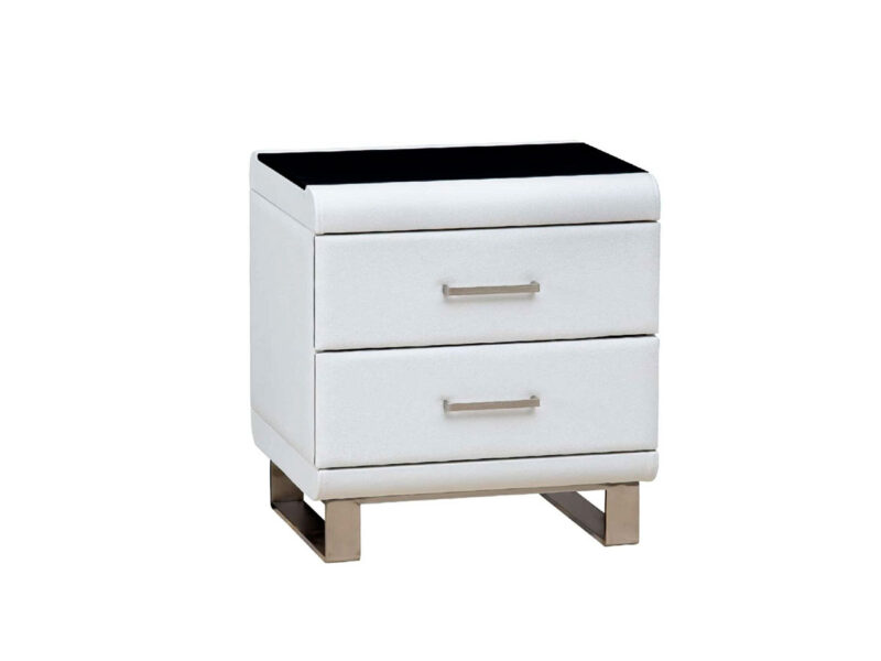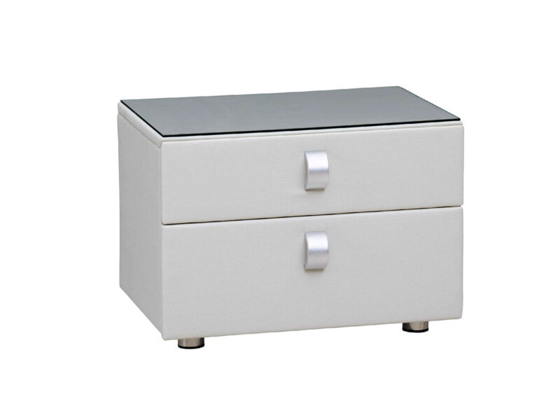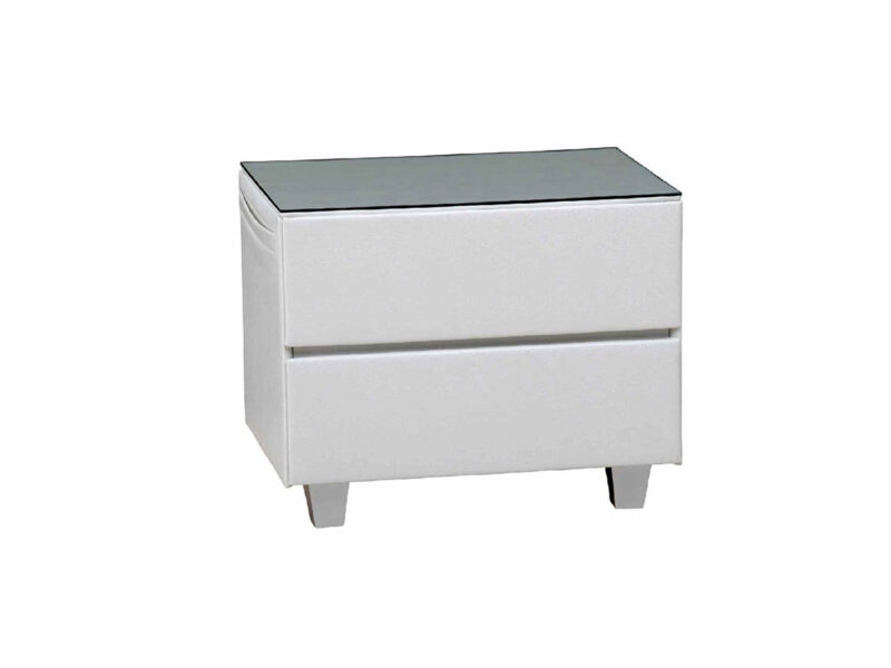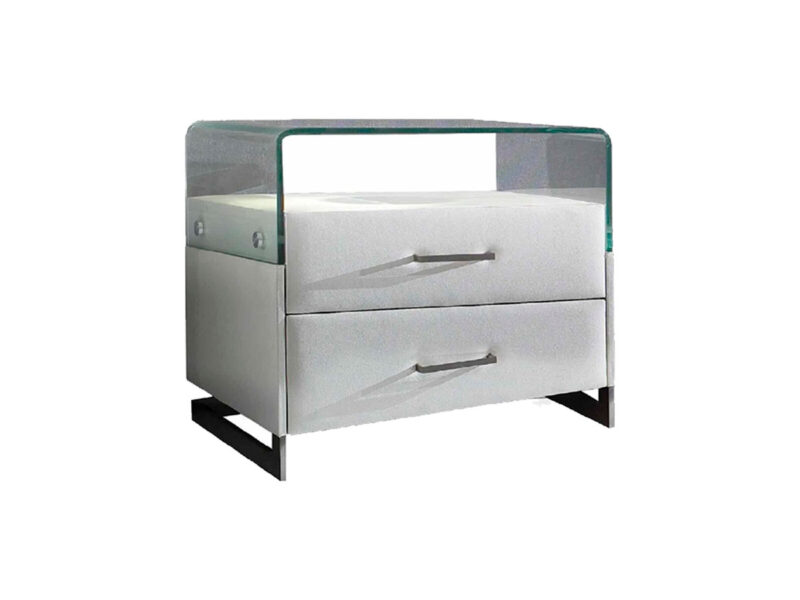 שידה-צד-למיטה-דגם-B619. שידה לבנה בעיצוב מנימליסטי יוקרתי.