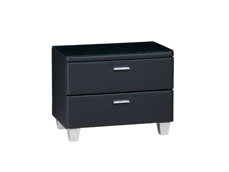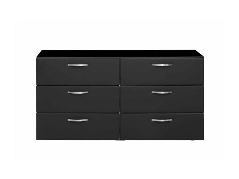 קומודה שחורה לחדר שינה דגם B660 . הקומודה מצופה בדמוי עור במראה יוקרתי מנימליסטי. בחלקה העליון יש מגן זכוכית המאפשר לה מגוון שימושים, מבלי לפגוג בציפוי העור.