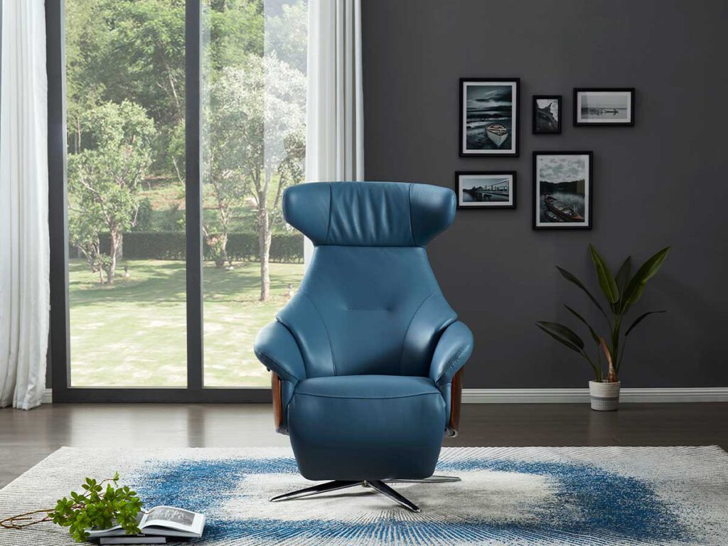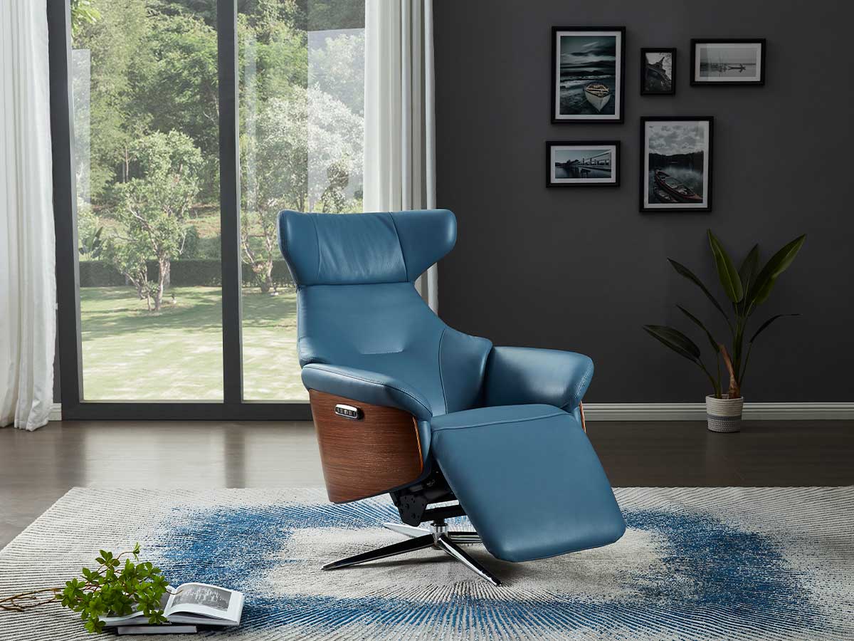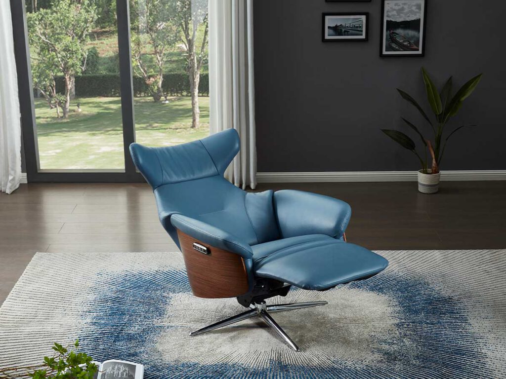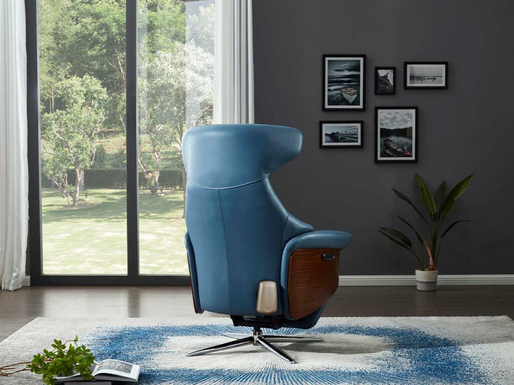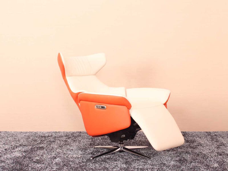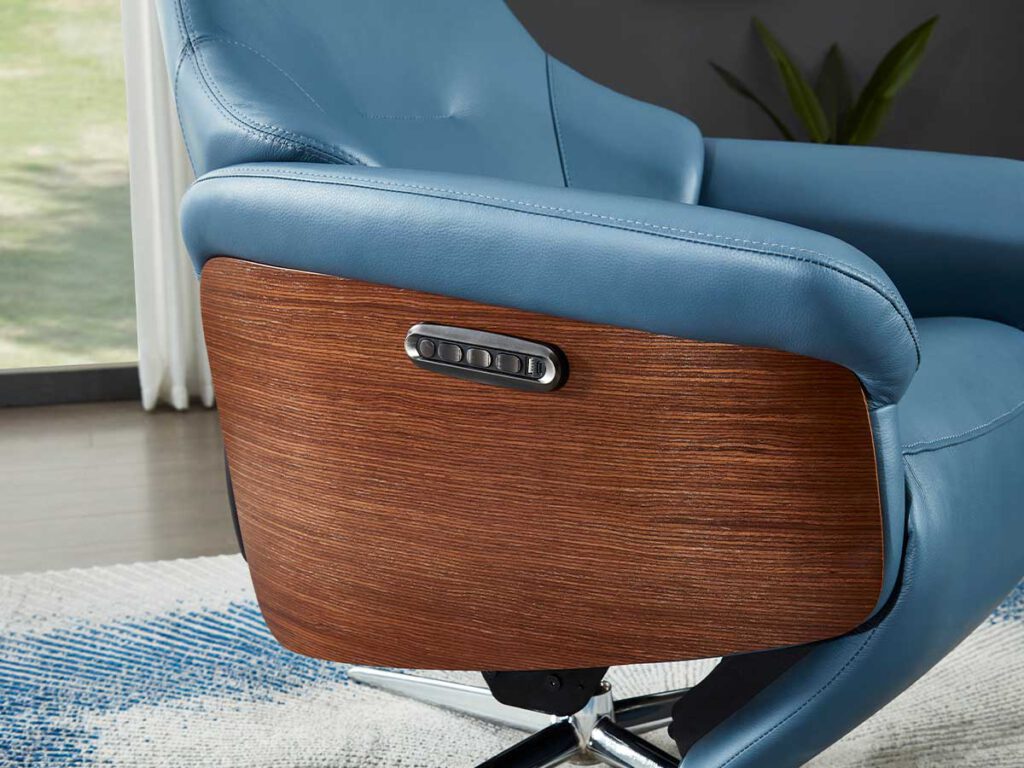- כורסא בעיצוב מודרני בהפעלה חשמלית ובריפוד עור.