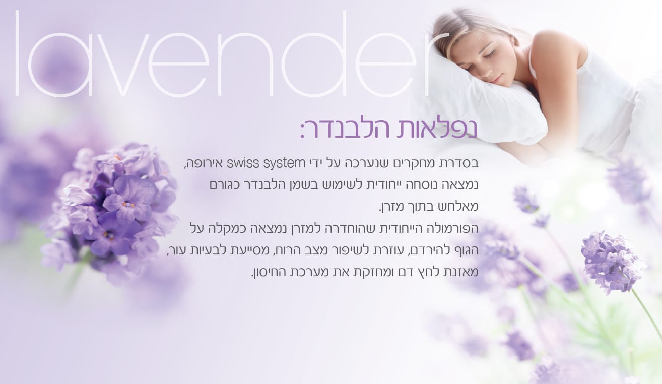 מזרון זוגי דו צדדי גמיש למחצה בעל ליבת פולימר מוקצף בשילוב שמן הלבנדר, כולל שכבות לטקס טבעי, בד ויסקוזה בשילוב קפסולות לבנדר.