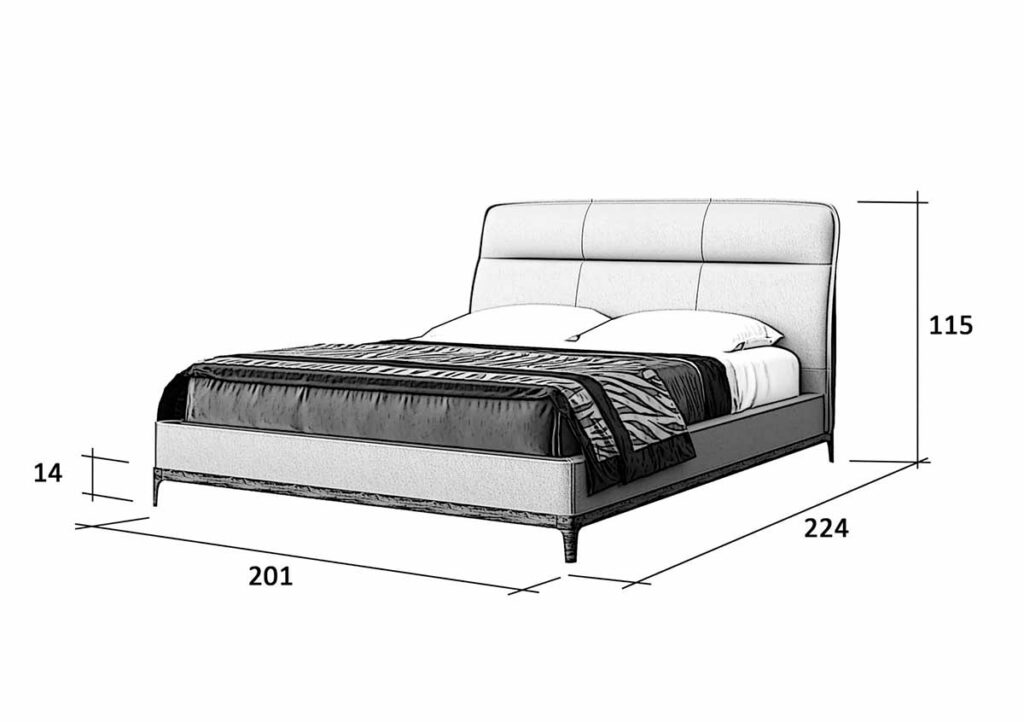 מיטה זוגית מדגם אינגליש משלבת מסגרת עץ מלא, ריפוד דמוי עור ועור מלא בראש המיטה. גובה הראש מקנה למיטה זו מראה מלכות יוקרתי.