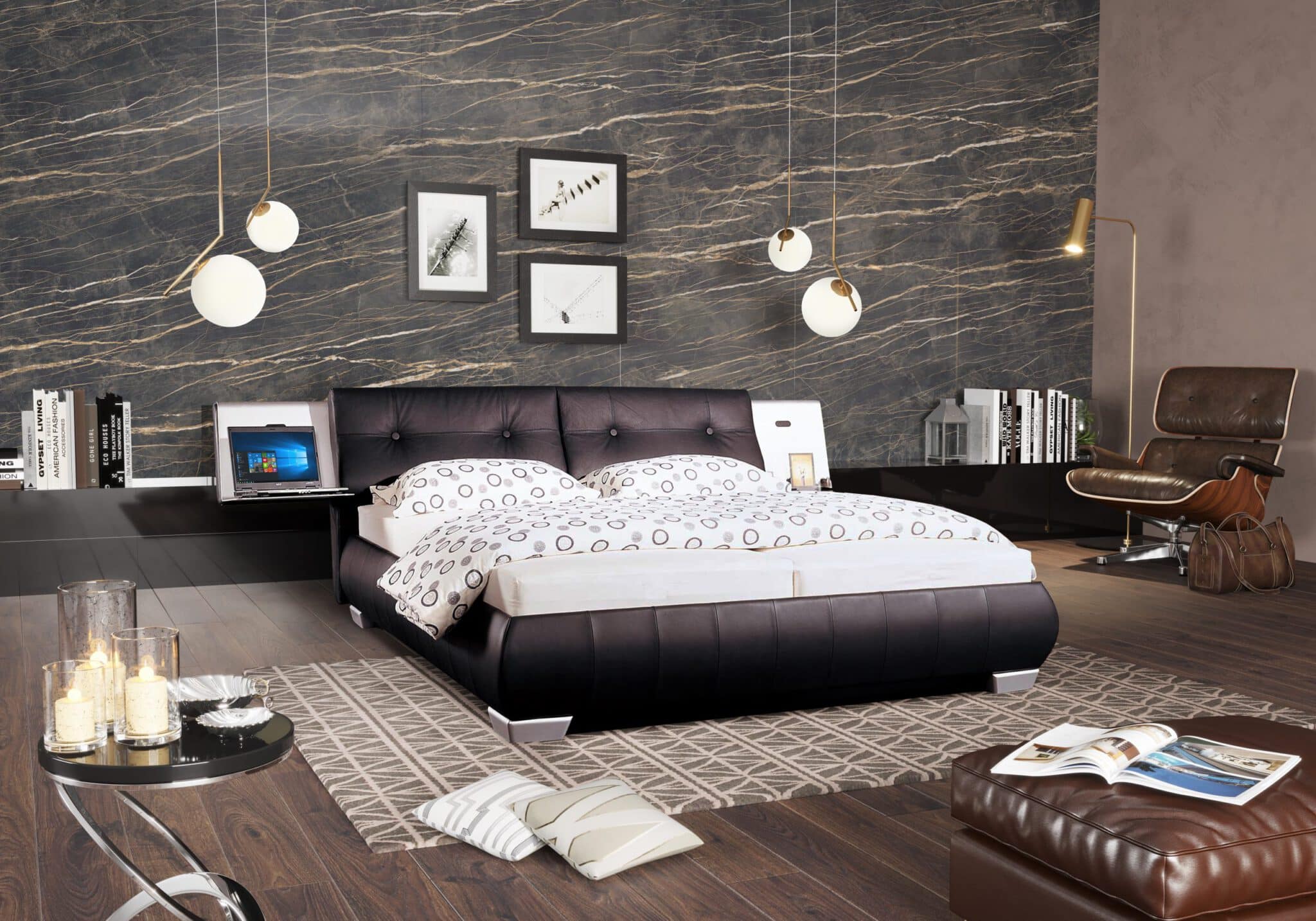 מיטה זוגית דגם דניש מאופיינת במראה נקי, זוג כריות בגימור כפתורי טפטינג, המיטה עוצבה על ידי Matthias Rossow מעצב הבית של “רופ ביטן גרמניה”.