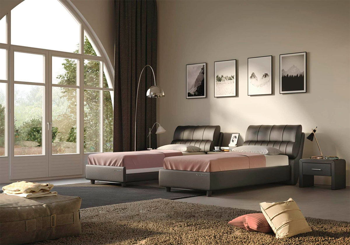 המיטה מגיע ב – 2 אופציות של גימור: עור משולב (הכריות בראש המיטה הבאות במגע עם הגוף עשויות עור מלא, מסגרת המיטה עשויה דמוי עור תואם) תצורה זו היא המומלצת ורמת גימור של עור מלא.