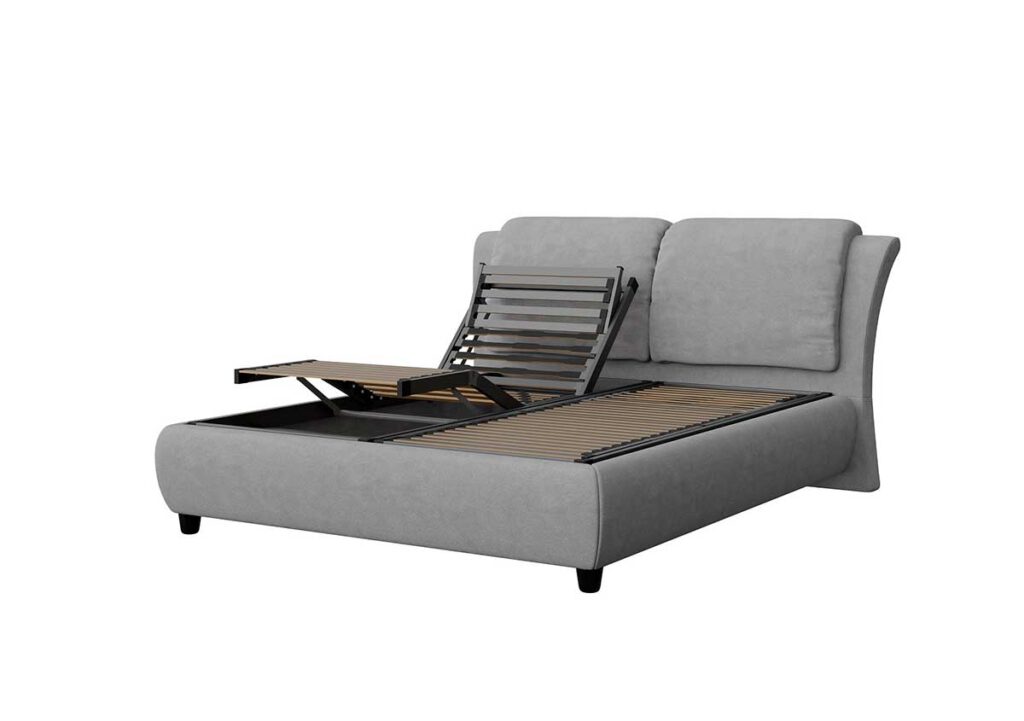 מיטה מתכווננת מדגם קומו עוצבה על ידי Matthias Rossow מעצב הבית של “רופ ביטן גרמניה” ומאופיינת בעיצוב מיוחד של ראש מיטה המשוך לאחור.