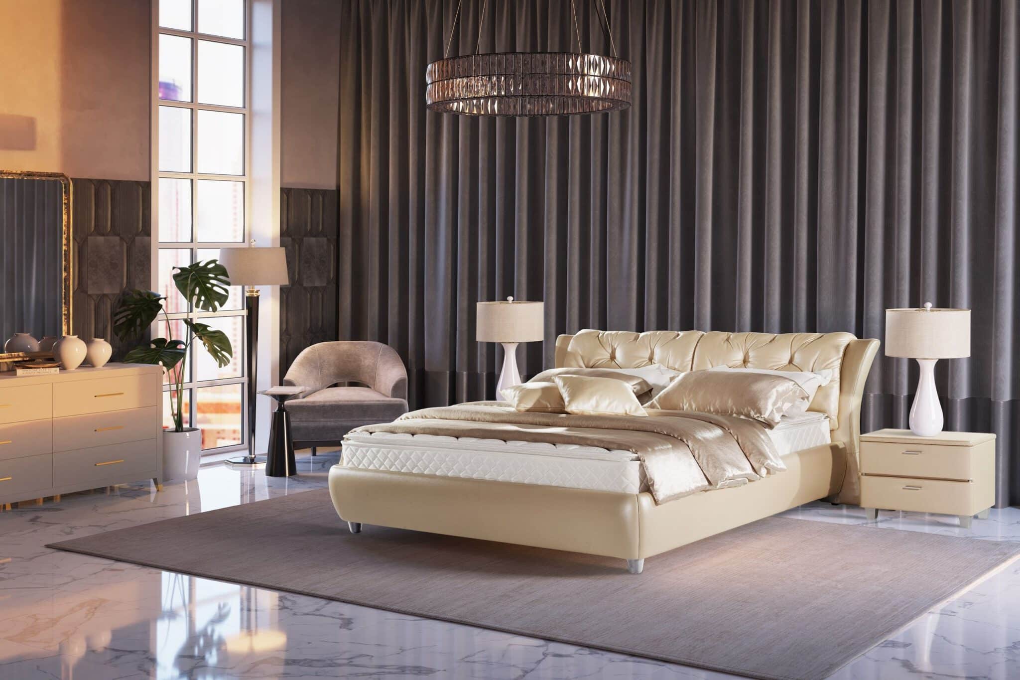 המיטה מגיעה בגימור של שילוב עור מלא בחזית ראש המיטה ודמוי עור במסגרת המיטה