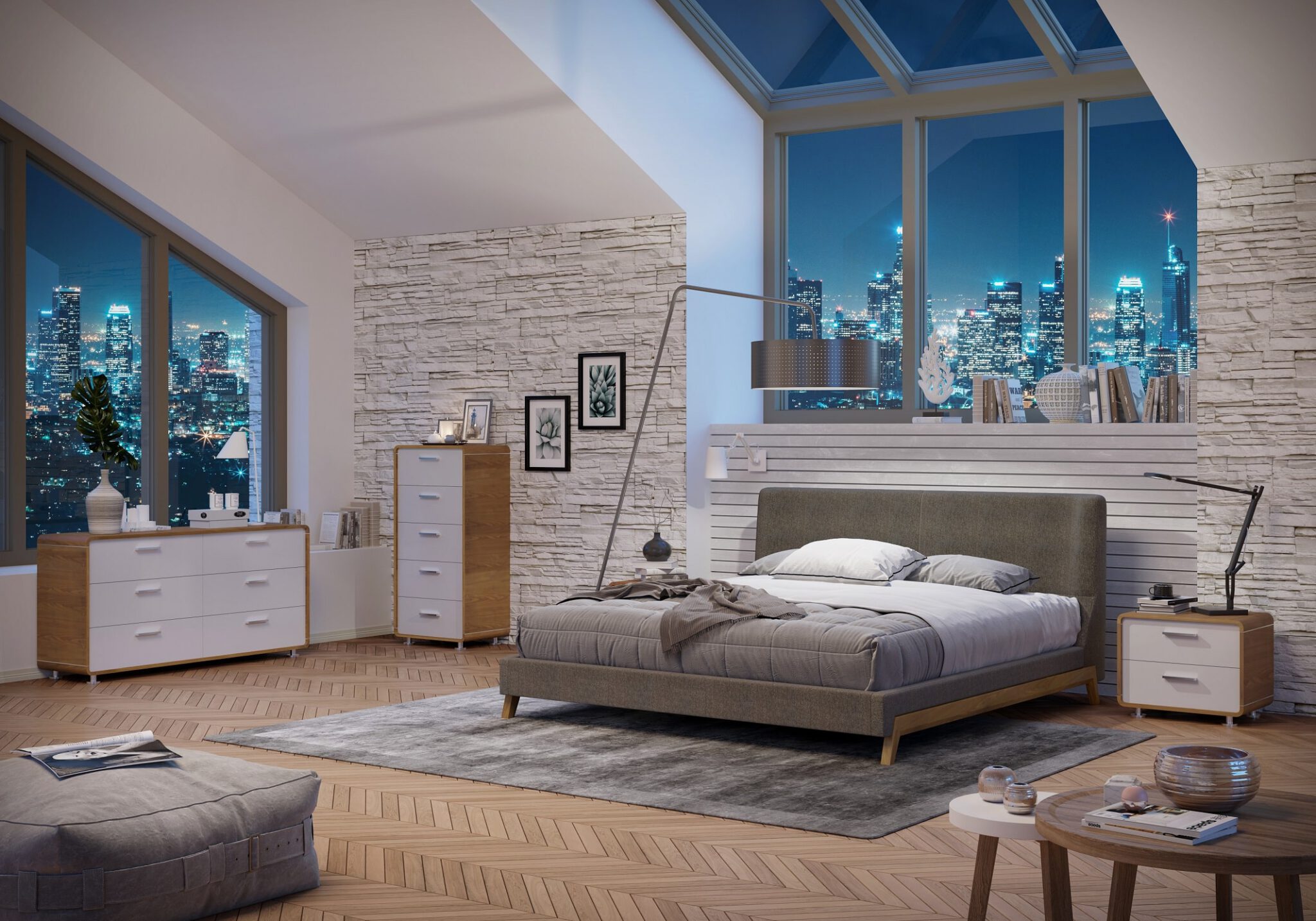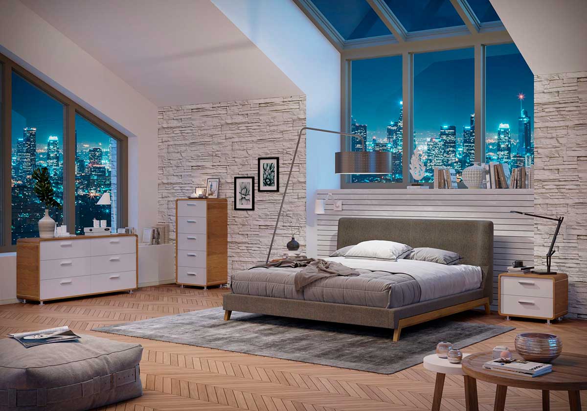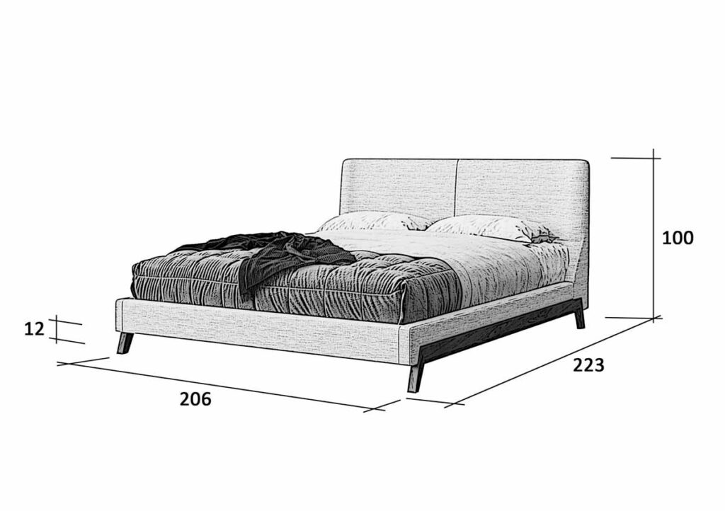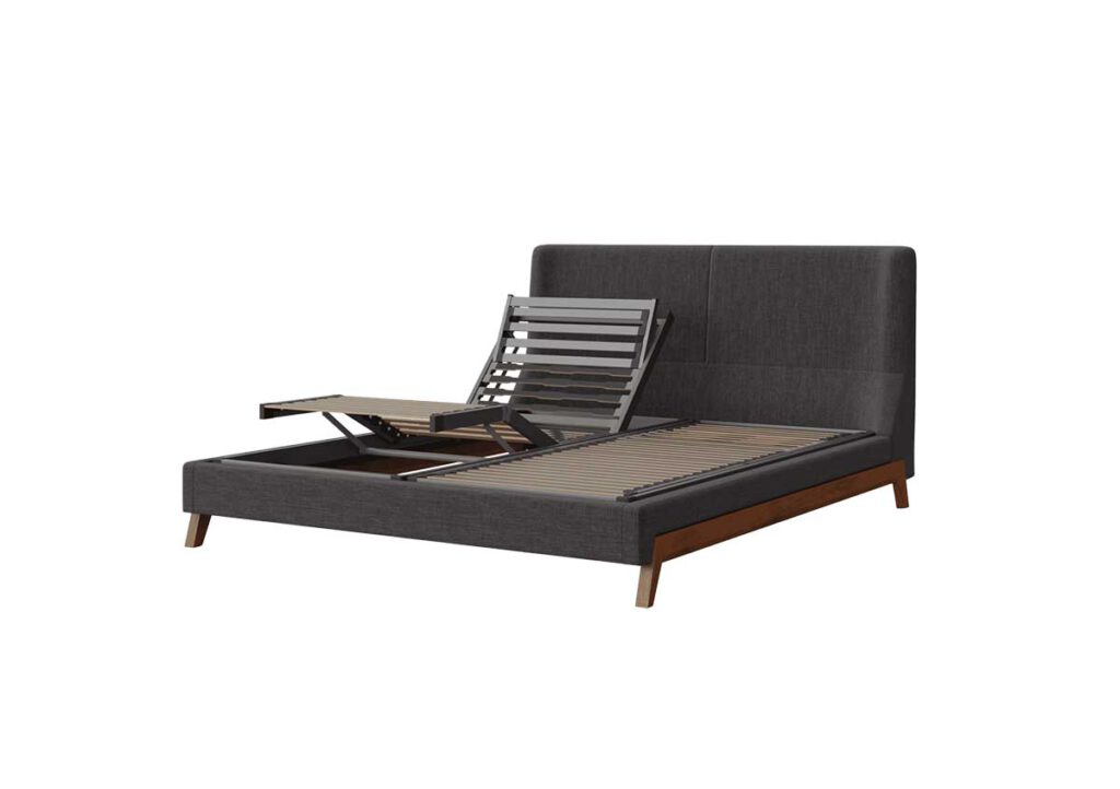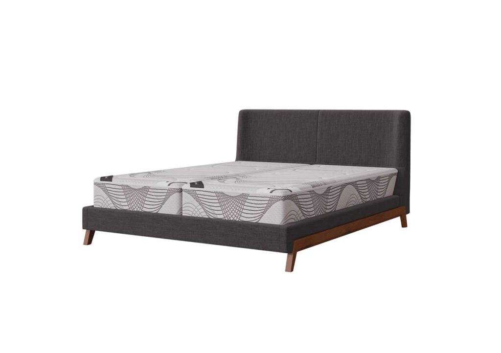 מיטה מתכווננת מדגם מדריד עוצבה על ידי Rick Gainsmith מבית המותג האוסטרלי “גנצווילי”, מאופיינת בשילוב של רגלי עץ מלא ובד ייחודי.