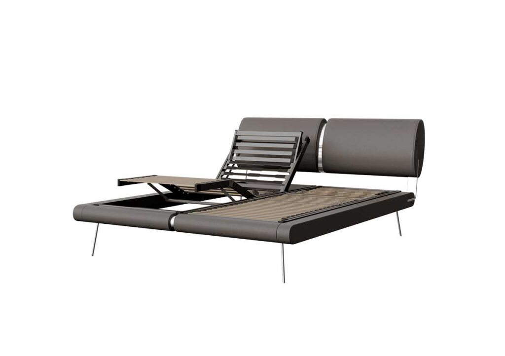 מיטה מתכווננת דגם סווידן מאופיינת בסגנון מודרני עתידני בשילוב אלמנטים של אלומיניום.
