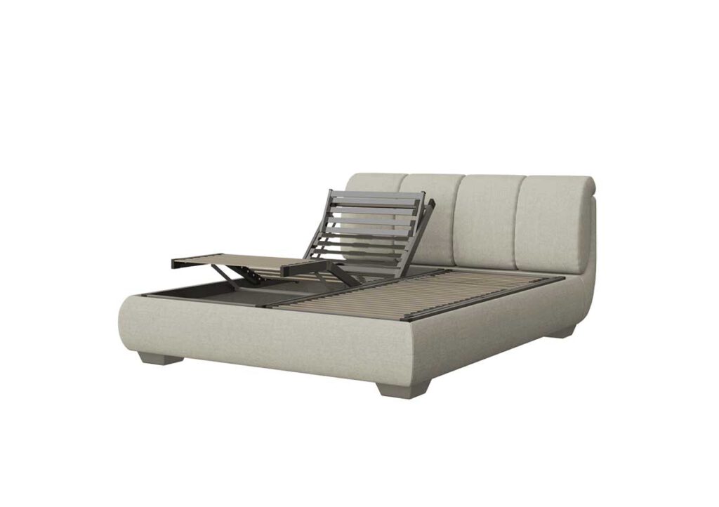 מיטה מתכווננת עם ארגז מצעים מדגם פלורנס עוצבה על ידי Matthias Rossow מעצב הבית של “רופ ביטן גרמניה” וכוללת כרית גב מיטה נוחה המאפשרת השענות מפנקת.
