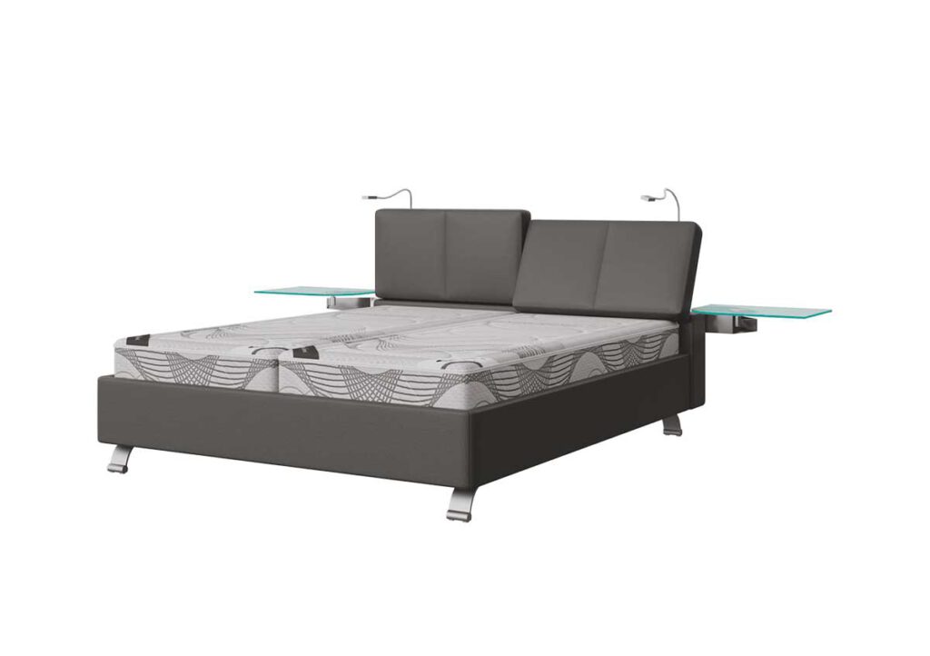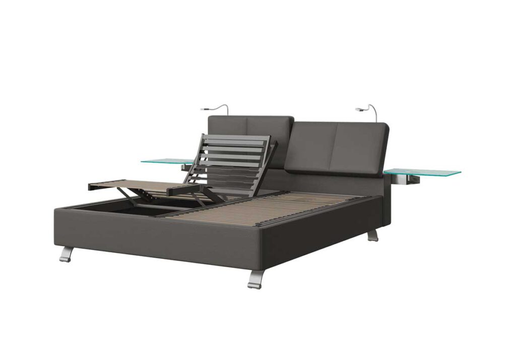 מיטה מתכווננת עם ארגז מצעים מדגם ג’רמן שעוצבה על ידי Brigitte Lichtner בעלת הגישה ההוליסטית וכוללת זוג כריות בראש המיטה הניתנות לכוונון לצורך נוחות מרבית.